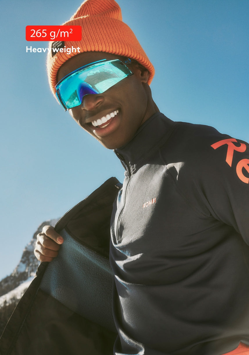 Our proprietary KOMBI MaeTrX RedHEAT™ fabric incorporates naturally-sourced carbon microcrystals.Thanks to this yarn-based technology, our garments retain their effectiveness compared to fabrics that use technical chemicals.