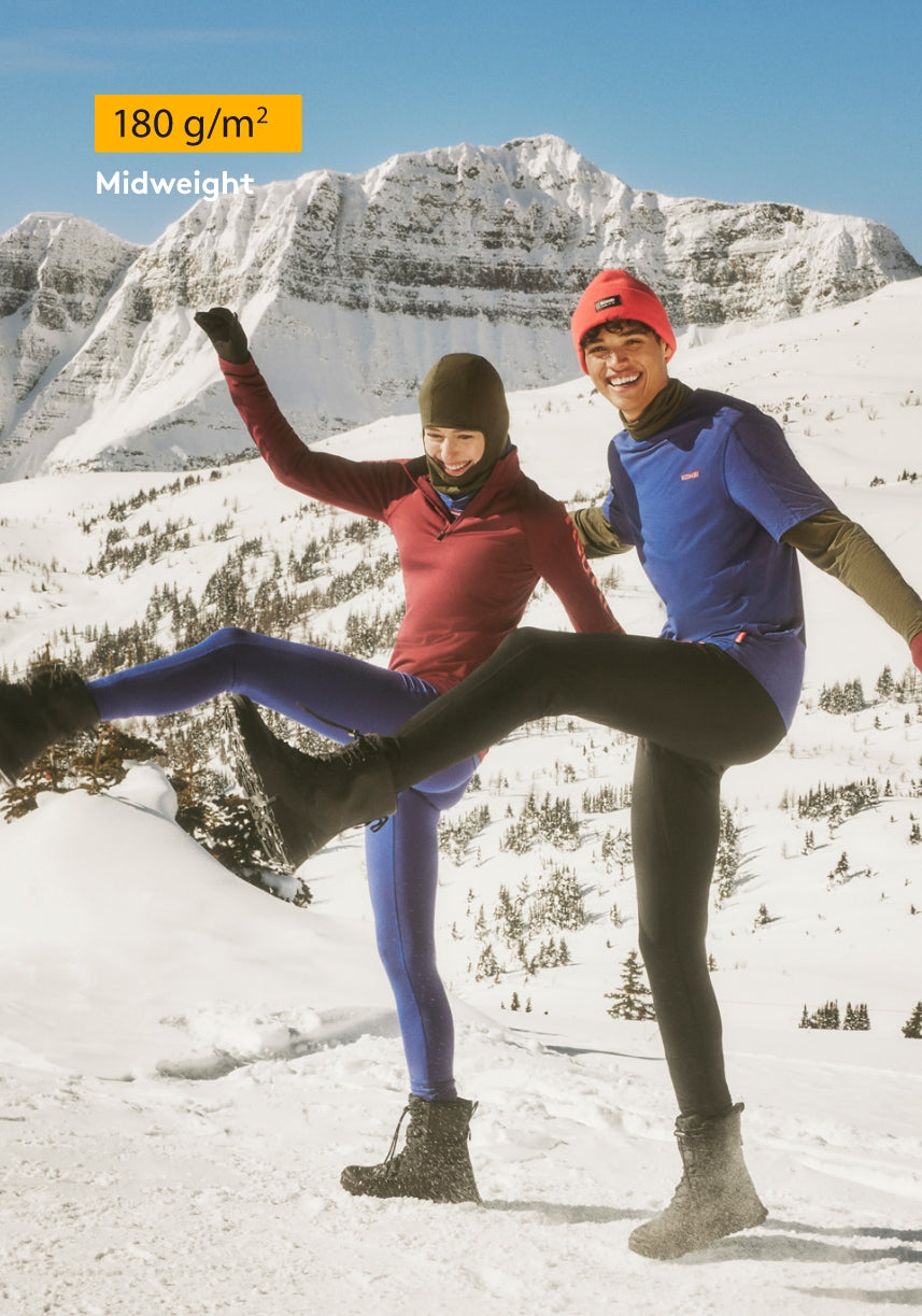 A go-to for all moderate activities and winter sports. Naturally antimicrobial, warm and soft on the skin.
